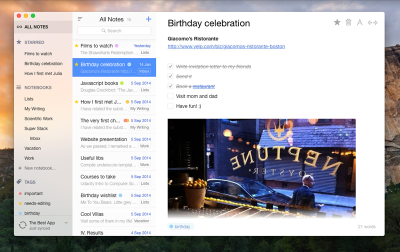 华丽的笔记应用程序的Mac与Evernote集成。Alternote拥有像素完美的界面,强大的搜索功能,无需分心的模式等等。它旨在成为做笔记,收集信息,写下你的想法,感受和记忆的最方便和自然的方式