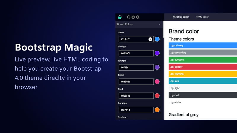 Bootstrap themes generator help you customize your Bootstrap 4.0 theme in minutes. Design your own bootstrap themes, like it ? Download less or css on the go.