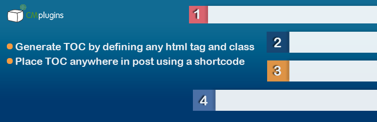 A user friendly, featured focused plugin which allows you to insert a table of contents into your posts, pages and custom post types. Features Automatically generate a table of contents for your posts, pages and custom post types by parsing its contents for headers. Optionally enable for pages and/or posts.